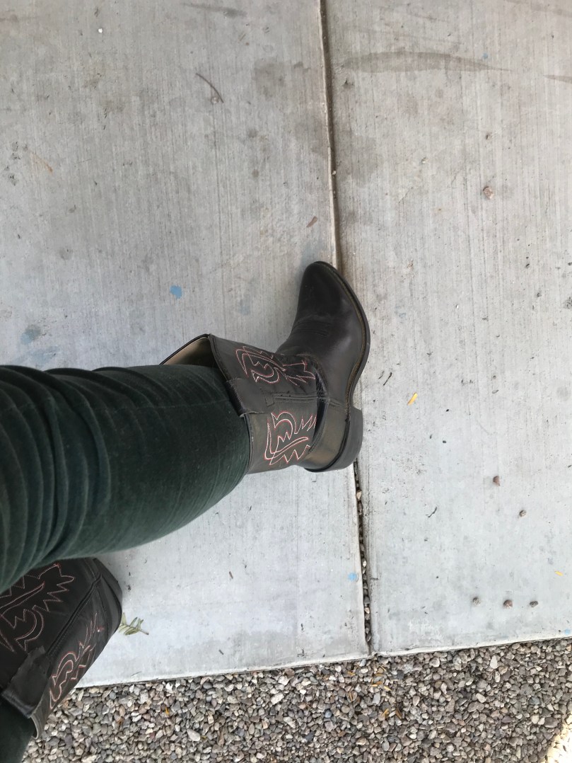 I am at my local neighborhood coffee shop and it’s the best. I’m trying to fake it till I make it to be fall I wearing boots and Valore pants, but it’s still iced coffee weather. I love that I have a little café right in my neighborhood and I definitely want to support them so they stick around!